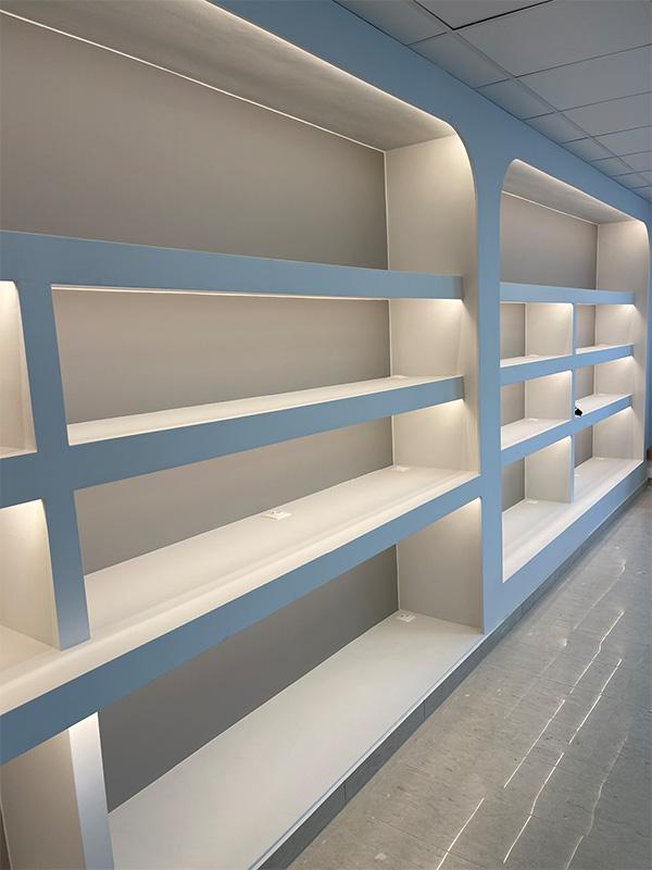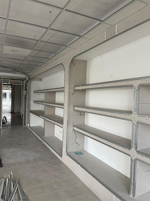 Plasterboard shelves, plasterboard compositions in living rooms